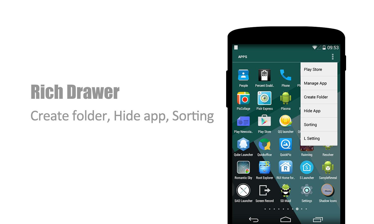 1. Based on Android 5.0 launcher, support for Android 4.0+ devices