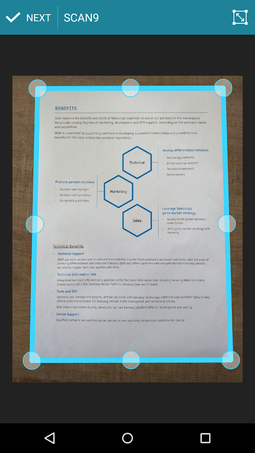 • Real-time tracking of your document frame providing the quickest and most accurate edge detection available for Android